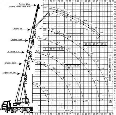 | Высота подъема, м | 34 м (44,5 м с гуськом) |